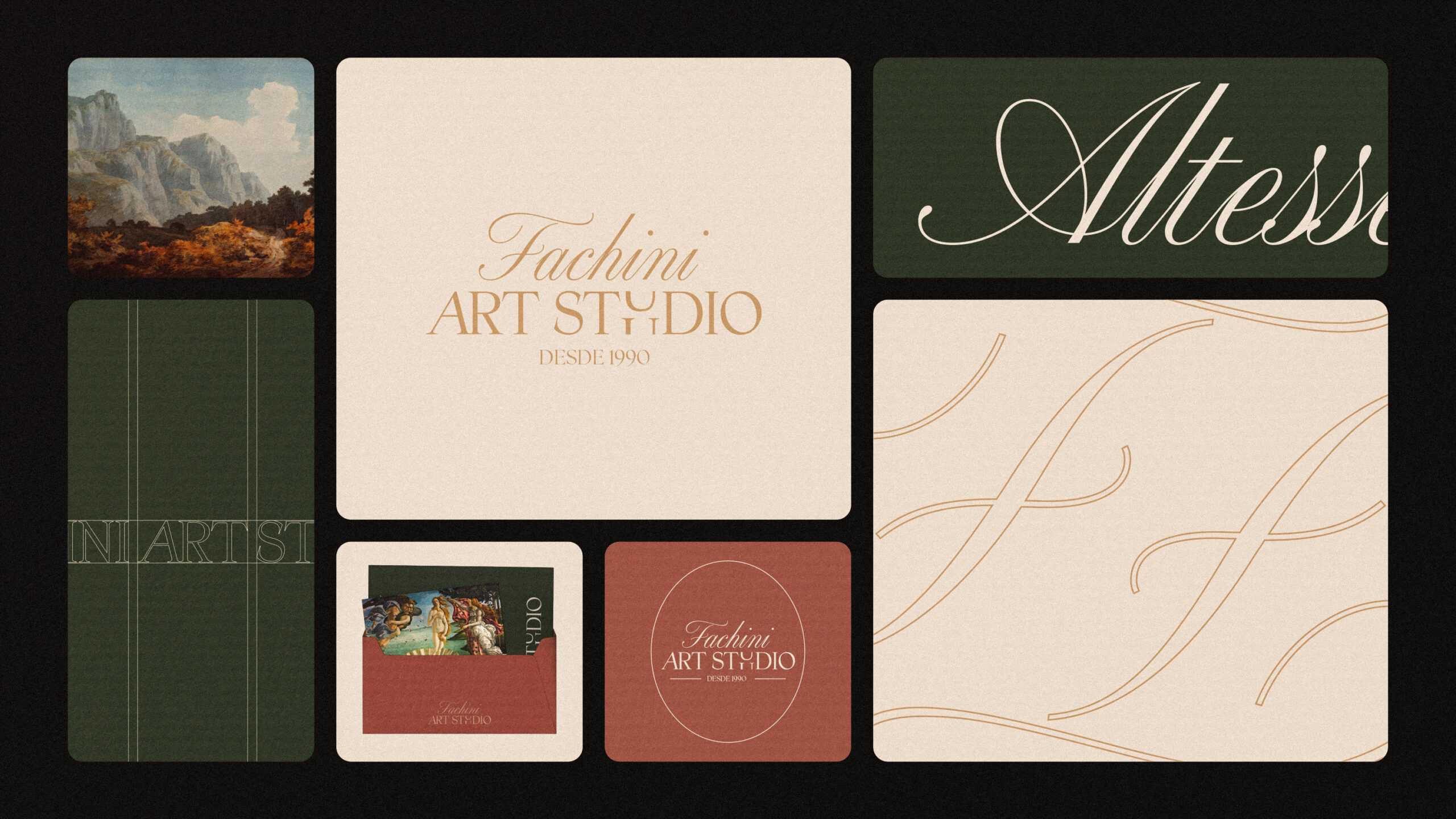 The visual identity of Fachini Art Studio reflects the delicacy and depth that define the atelier. Inspired by the harmony between time, gesture, and matter, the brand seeks to express the balance between the intuitive and the rational, between the silence of contemplation and the creative force of artistic creation.